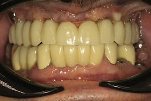 Операция двухсторонний синус-лифтинг. Удаление нижних 4х зубов. Имплантация на верхней челюсти 6 имплантов, на нижней челюсти 2 импланта.