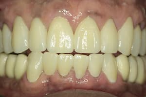 Тотальное протезирование пациента со стираемостью зубов. установлено 8 имплантов в боковых отделах - Neodent с последующим изготовлением вначале временных коронок PMMA Cad CAM а через 3 месяца заменой на циркониевые и E.Max на верхнюю и нижнюю челюсть.